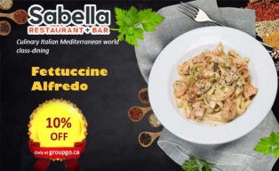 Sabella casual restaurant and bar offers a wine bar, table seating, modern décor, and fine food, at 23 Barrie St., as well as takeout, delivery, and catering. Downstairs, S2 Sabella Social offers a more casual party room. For more information, contact 905-551-8800