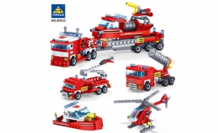 KAZI City Firefighter 348pcs Fire Fighting 4in1 Helicopter Boat Car Trucks Building Blocks Educational Toys for Children